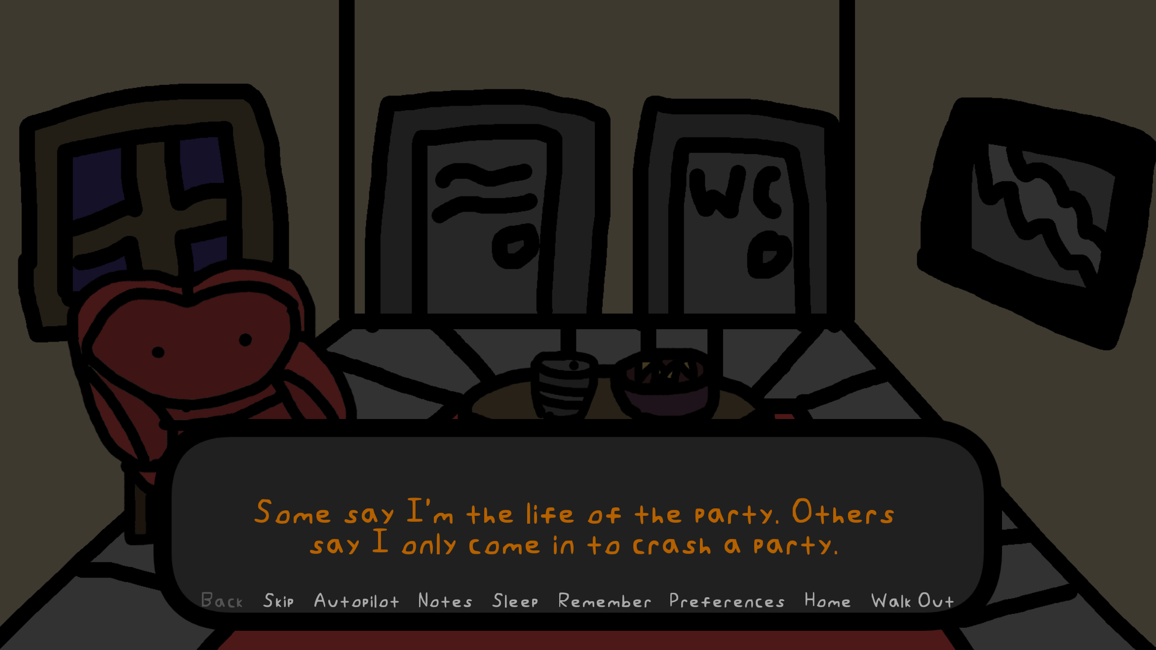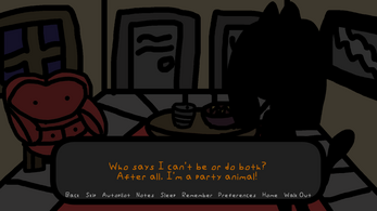 Yeah, I realize the ending may have set up something at the end there, but I stopped it there anyway in the end. I may up end up updating the game to change the first line, since it was a clear ripoff of Kesha’s song, and to possibly change up a word from “individuals” to “beings”. Regardless, I actually put effort into this VN, despite it being for a low-effort game jam. It’s also ranked. I hope I get in 1st place, if not 2nd or 3rd. Otherwise, I actually created the font myself, which you can find in my many other visual novels, which are also fairly short. As to whether there will be a sequel or not, I don’t plan on making a sequel. So, I suppose the ending sits in a weird place of being a bit of a cliffhanger there. Thanks for the feedback! Much appreciated!